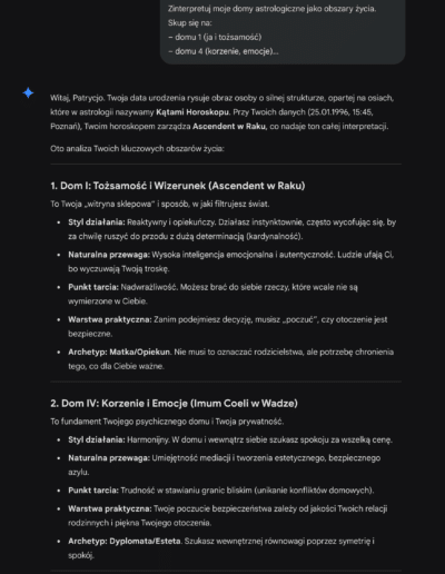 W praktyce: nieznana godzina urodzenia nie blokuje Ci pracy z tym zestawem, po prostu część analiz będzie bardziej ogólna albo przełączysz się na prompty, które nie wymagają tej danej.